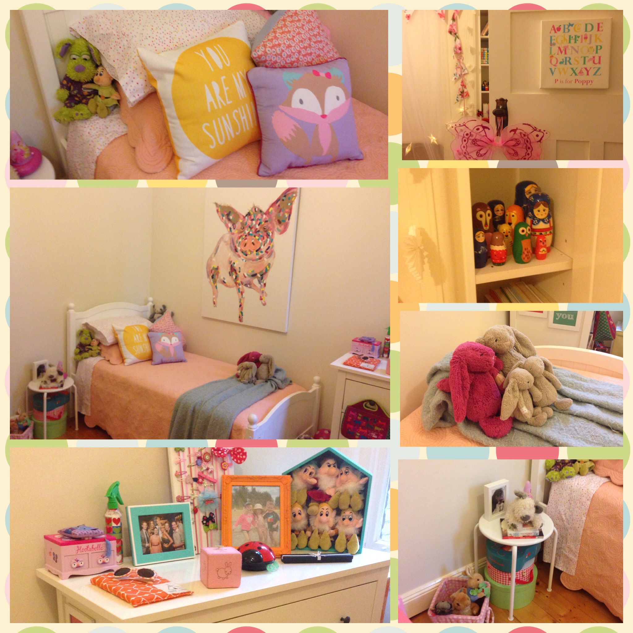 Yep, too easy until we got home. I popped the sheets in the washing machine and then took the linen off her bed. At which point I thought we might move her bed around. And her bedside table. And drawers. And tidy up her toys. And. And. And.