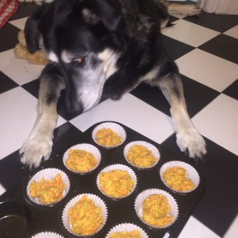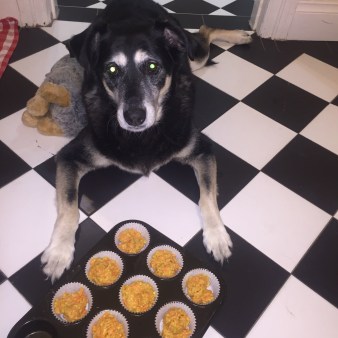 A few months ago our friends over at 2 Dawgs Blog posted about Freighter’s Third Birthday. I flagged that post because I thought the pupcakes therein sounded pup-e-licious. And {unlike some others I’ve tried} the addition of honey to the recipe made them sound like Love Bug and I might be able to eat them too.