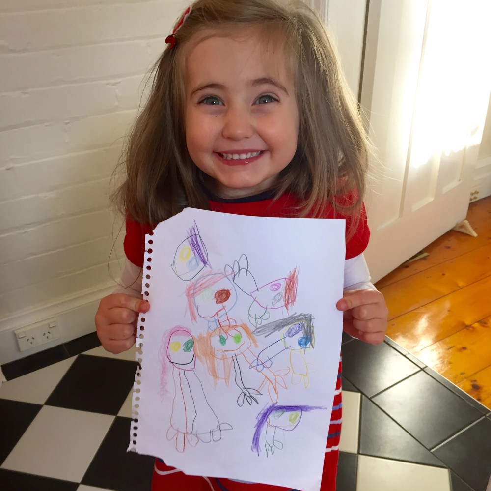 Yesterday she came out to me beaming and holding a lovely drawing of a colourful group of people. When I asked who they were she replied they are a very special family
