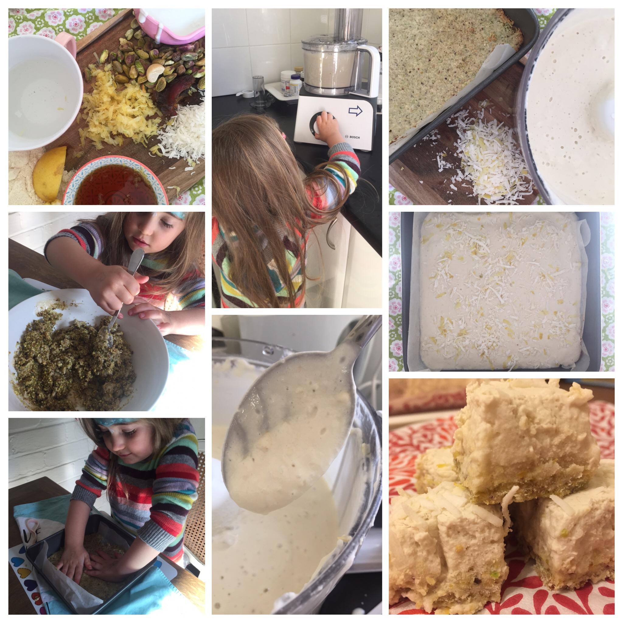 - In a mixing bowl mix coconut flour and coconut oil until smooth. Mix together with processed almonds and dates from above step. Press mixture into the bottom of your prepared pan.